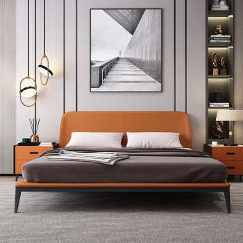 高級華庭ベッドの意味式があります。極めて簡単で、真皮のベッドは現代で約1.8メートルの大気ins風です。北欧の新しい豪華な主な寝室の小型の軟包皮の結婚ベッドは1.8シングルベッドです。