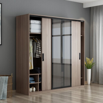 華庭の箪笥があります。北欧の押戸と箪笥の寝室は簡単です。現代の三門の箪笥の全体はガラス戸の板式箪笥の2 M箪笥を組み立てます。