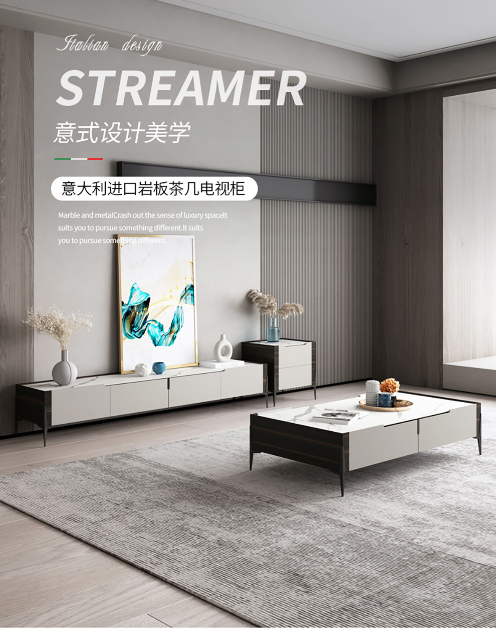 | 商品の名称 | 華庭茶のいくつかのテレビの箱のイタリア式の輸入の岩板のお茶の何のテレビの箱の組合せの北欧が簡単で現代的な小さい家型の客間のお茶の何+2メートルのテレビの箱があります |