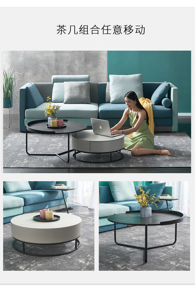 木のフォークリフトの北欧の大きさの円形は回転するお茶のいくつかのテレビの箱の多機能の小型の設計者の炭素鋼が簡単に現代の可変の円形のお茶の台の箱の小さい円の何【簡約風】を整えます。