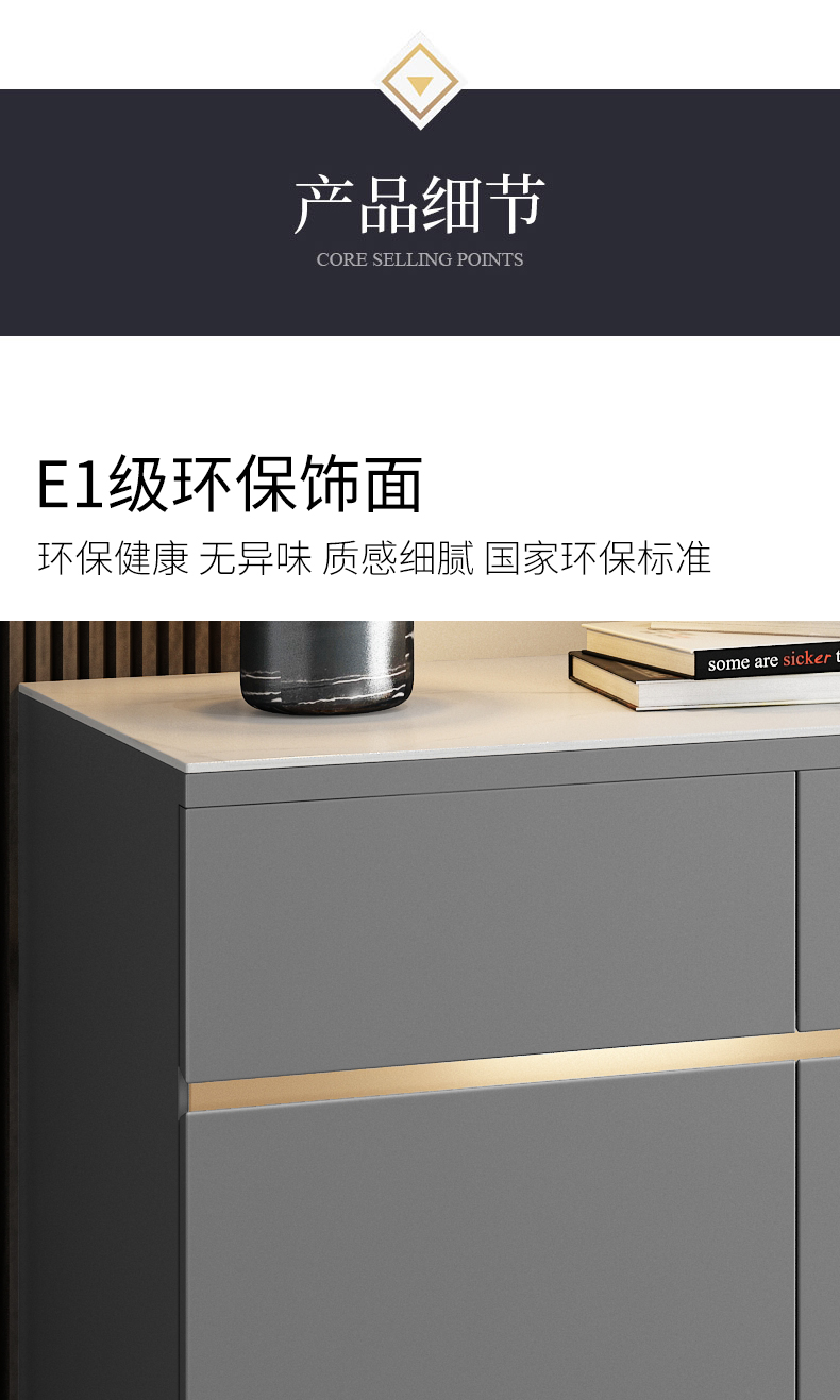 木のフォークリフト木の軽奢な岩板の食事の辺のキャビネットの現代簡単な欧米式の漆のお茶の食器棚の小さい戸型レストランの台所の食器棚は一体壁に頼って玄関の戸棚の1.2メートルの灰色の金に入ります(岩板の台の面は備考を頼みます)。